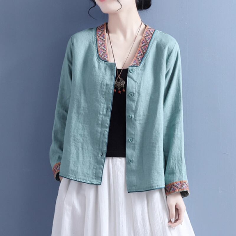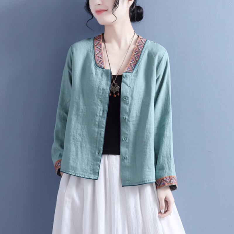 10018 / オープンフロント 花柄刺繍 シャツジャケット