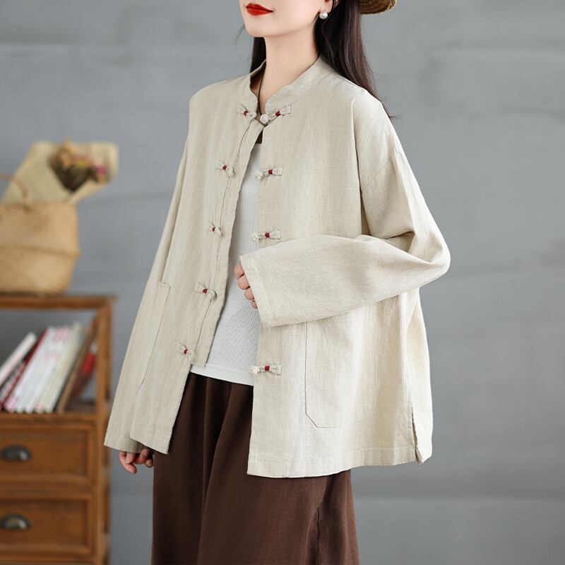 オリエンタルな雰囲気漂う、チャイナボタンが目を引く長袖ブラウスです。