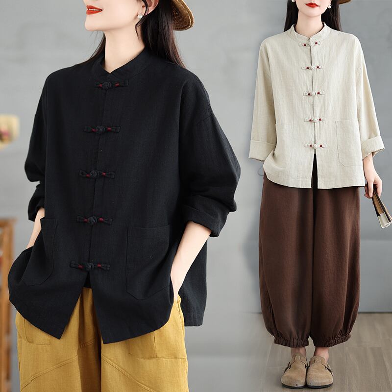10010 / チャイナボタン 長袖 シンプル ブラウス