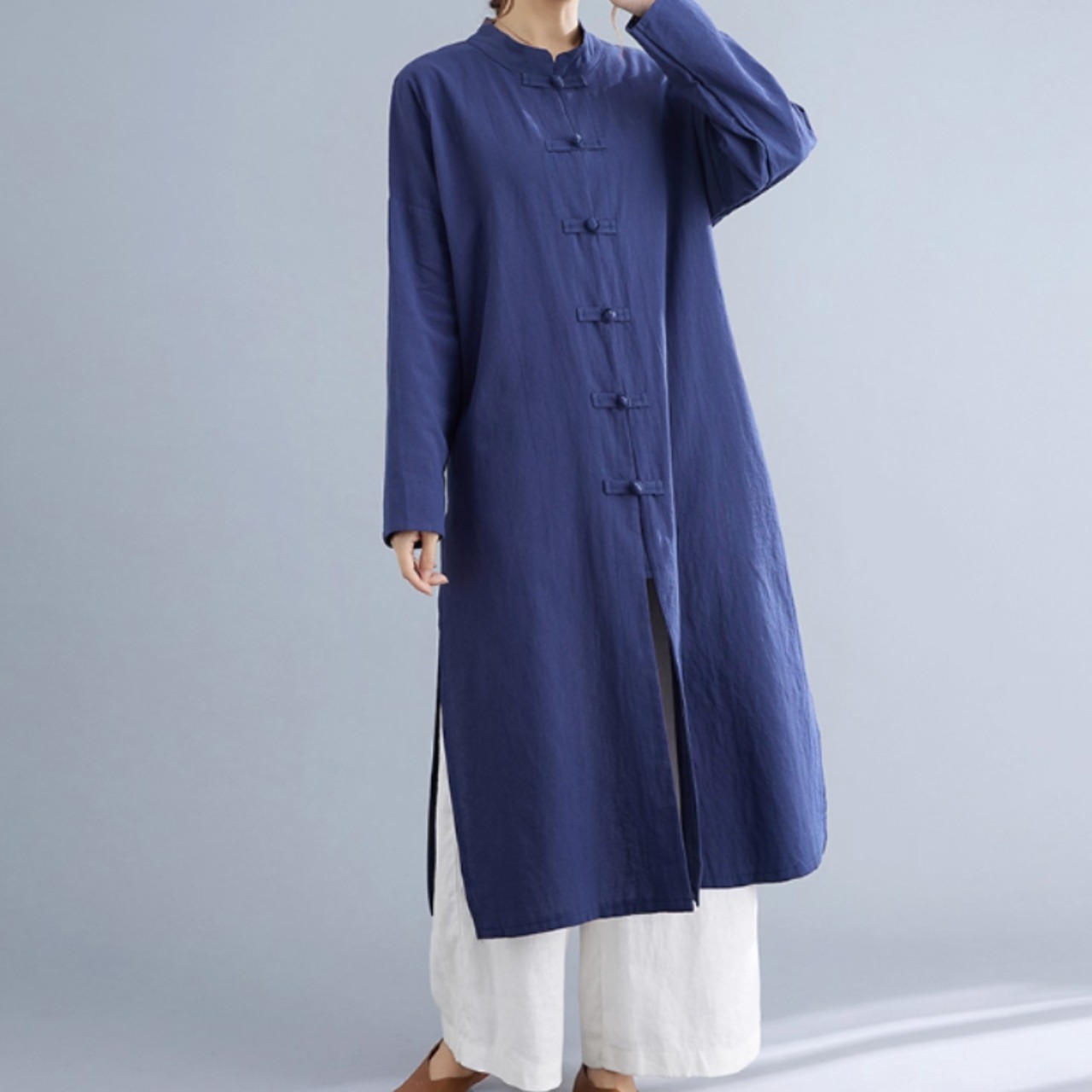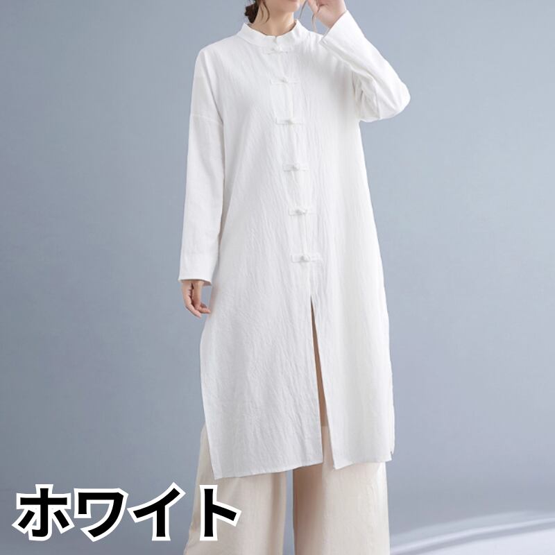 10011 / チャイナ風 ミモレ丈 シャツワンピース