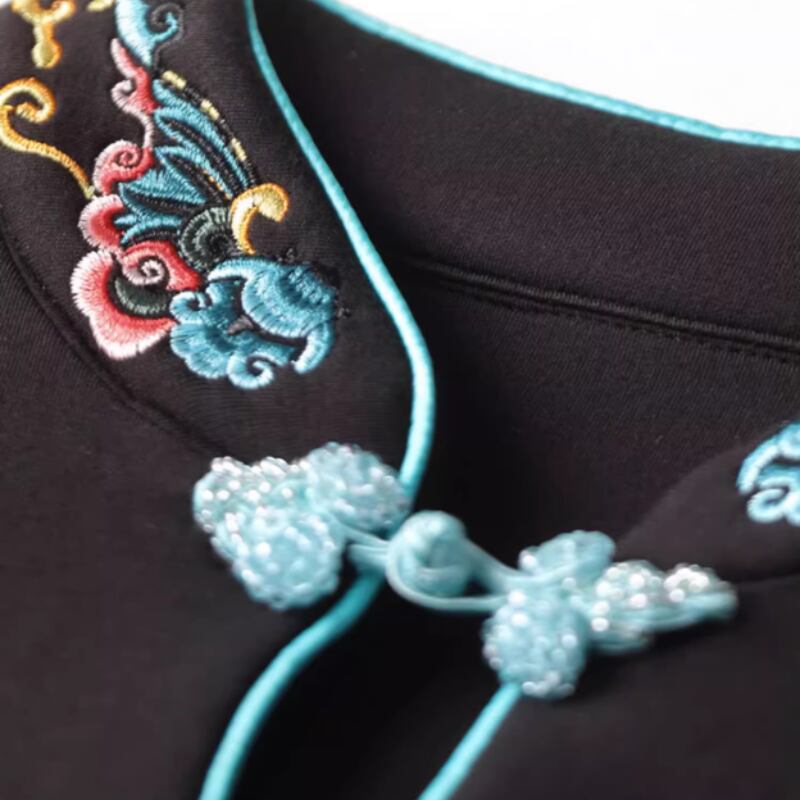 袖口の刺繍が華やかな、チャイナ風ドロップショルダースウェット。