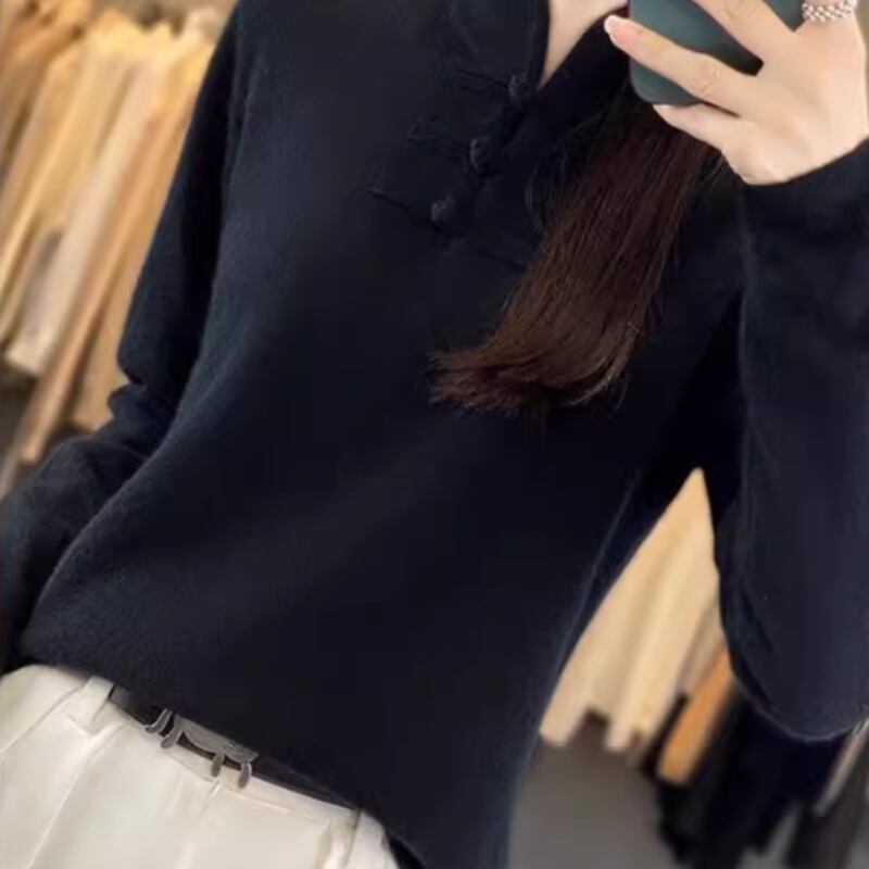 シンプルなデザインの中に、チャイナボタンが個性をプラス。